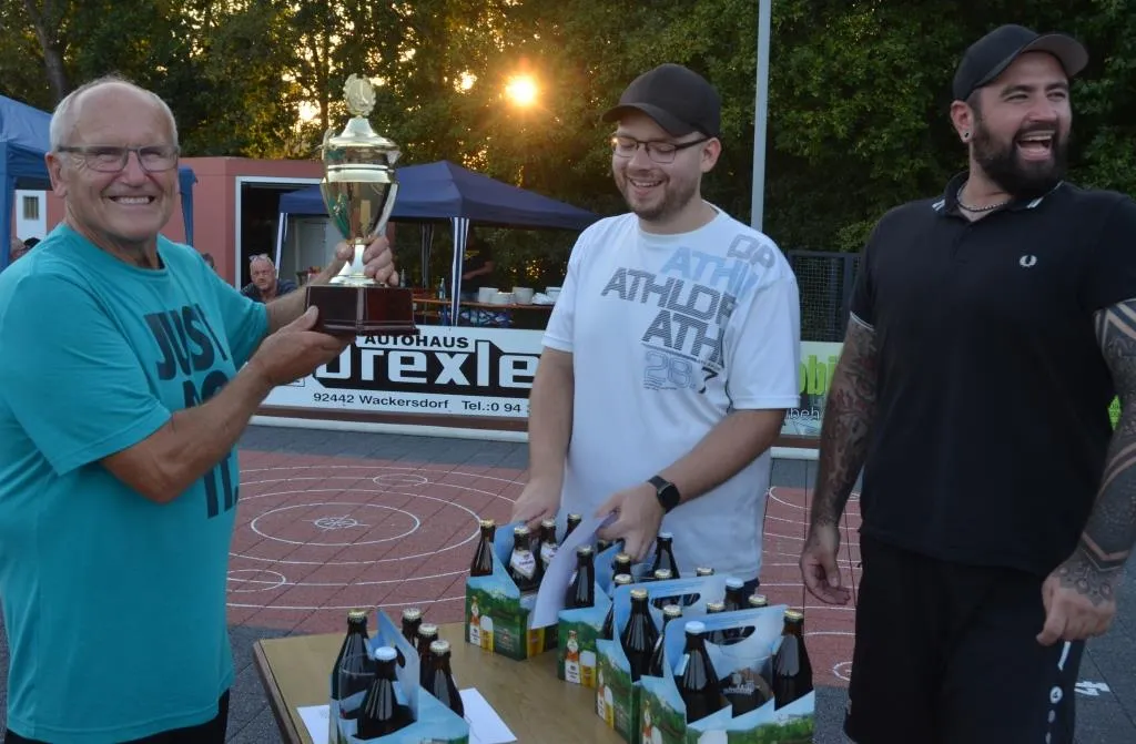 Für alle Mannschaften gab es ein Tragerl Naabecker Bier und dem Siegerteam winkte der Wanderpokal. Am Ende setzte sich klar mit 17:1 Punkten die Dorfgemeinschaft Meldau durch, die nach mehrjähriger Pause wieder eine Mannschaft ins Rennen schickte. Die Spieler Josef Gleixner, Andreas Süss, Peter Appelt und Johann Seebauer bezwangen das Team „Red Bull Drexler“, das 12:6 Punkte erreichte. Punktgleich waren auch „Die Hüttenfreunde“, aber die bessere Stocknote hatten. Auf den weiteren Plätzen folgten: Bergmannschützen 11:7 Punkte, „Die Bikers“ 10:8, „Dorfmoasta 23“ 8:10, Kirwaleid Heselbach 6:12, Stocknote 39:56, Stammtisch Dauerbrenner 6:12 / 41:62, Trachtenverein „Almenrausch 6:12 / 42:65, Burschenverein Wackersdorf 2:16 Punkte.